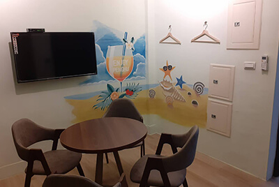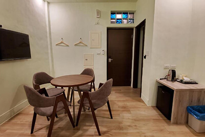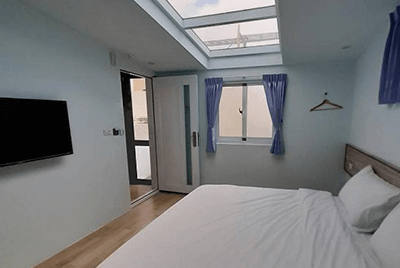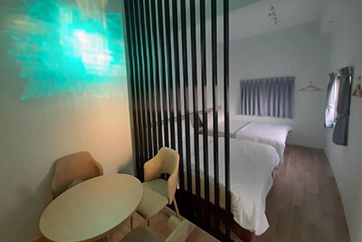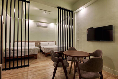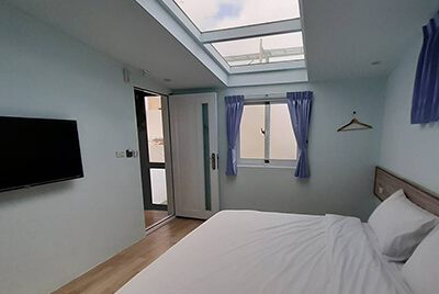 位於一樓獨門獨戶的海洋房四人房,進出不用經過櫃檯,也不會和其他房客接觸,出門即是馬路,提供極佳的隱私