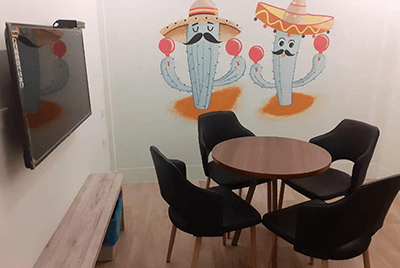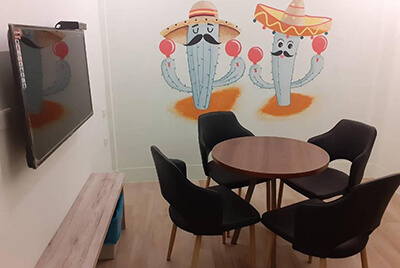 二樓的仙人掌四人房,進門馬上看到,客廳有墨西哥造型仙人掌兄弟彩繪,熱情的拿著搖鈴歡迎您