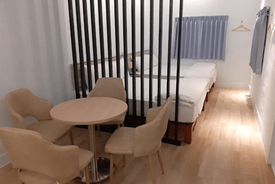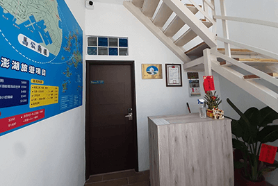 一樓櫃台後方的沙灘六人家庭房,進入民宿即是房間,十分便利也極少和其他房客接觸
